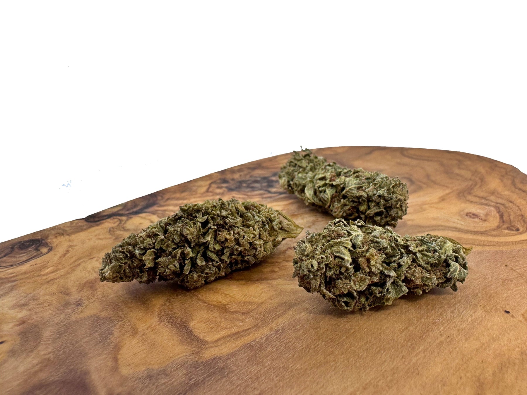Die Blüten sind dicht, harzreich und zeigen einen tiefgrünen Farbton mit bläulichen Untertönen. Sie sind großzügig mit schimmernden Kristallen bedeckt und sorgfältig von Hand getrimmt. Ein langsamer Fermentierungsprozess verstärkt die aromatische Tiefe und Sanftheit des Endprodukts.
